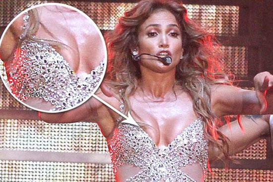 С Дженнифер Лопес произошел очередной конфуз. На концерте в Лондоне грудь Дженнифер выскользнула из открытого декольте. Несмотря на то, что сама певица даже не заметила этого, папарацци все же успели запечатлеть непослушную грудь Дженнифер. В результате вся планета может любоваться снимками, на которых виден сосок звезды.
